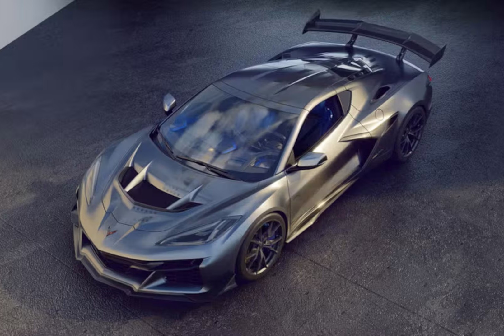 - A hand-painted Dark Satin Steel exterior crafted by GM’s Design Fabrication experts