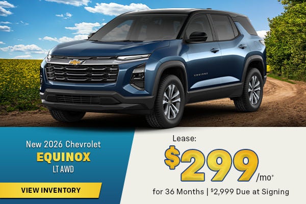 *Photo for illustration purposes only. Lease for 36 months. $299 per month. $2,999 due at signing. 10,000 miles per year. Price does not include tax, title, or registration. $490 dealer doc fee included. VIN: 3GNAXPEG3TL396437. With approved credit at GM Financial. Includes GMF Lease Loyalty or conquest rebate. Not all customers will qualify. See dealer for details and eligibility. Take new retail delivery by 4/30/2026.