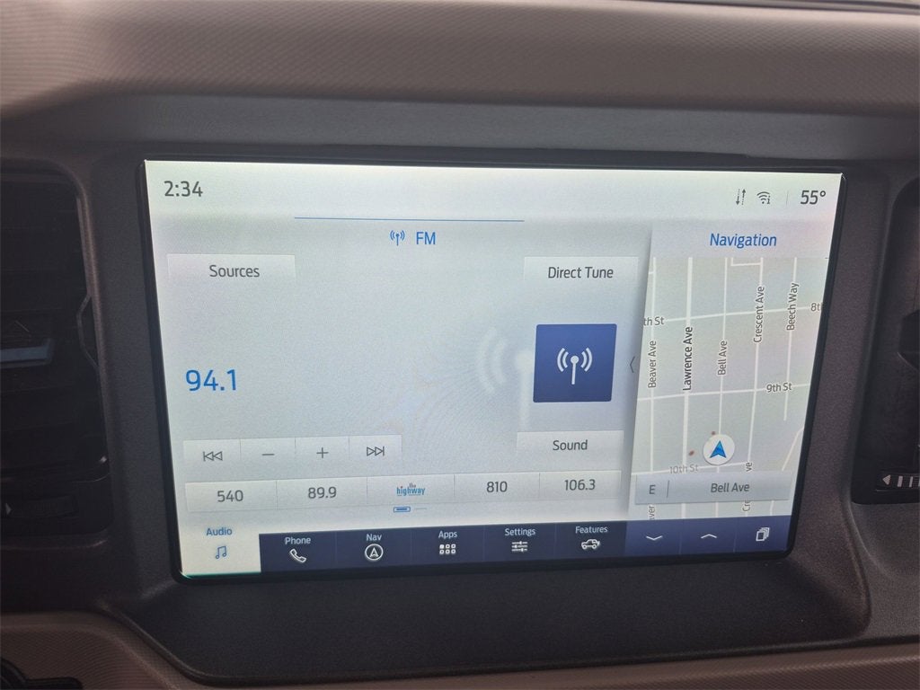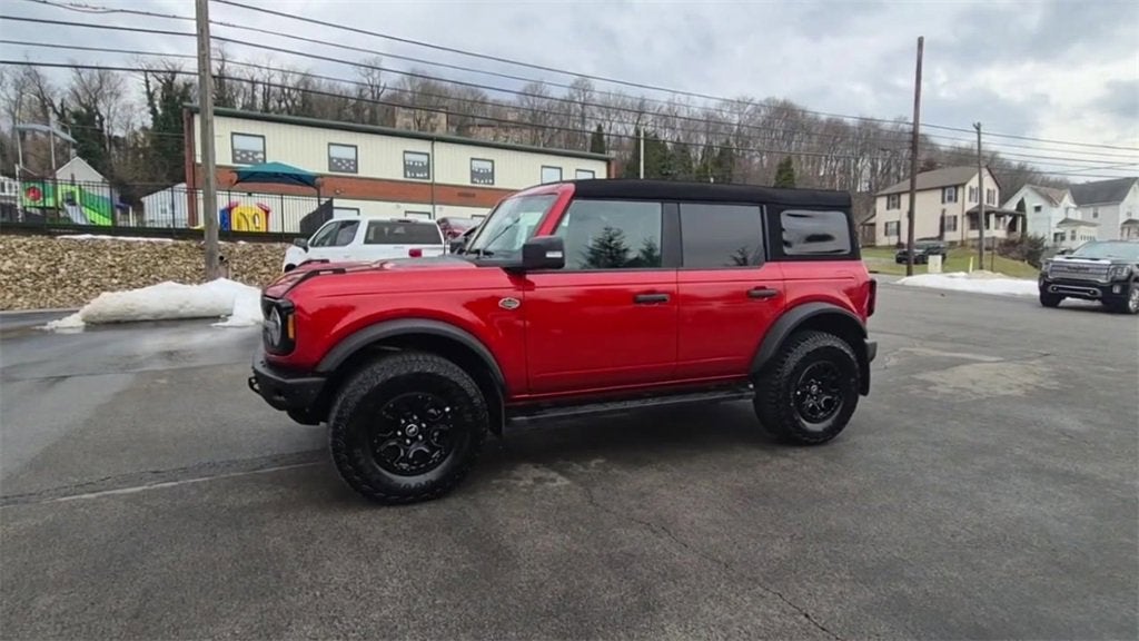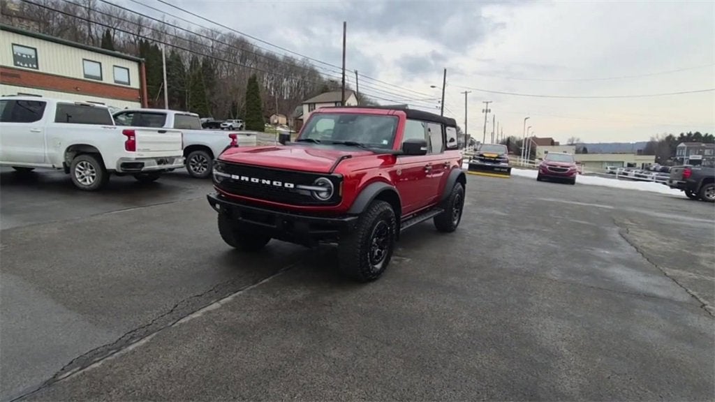 1 owner, Local Owner, 10 Speakers w/Subwoofer, 360-Degree Camera, Adaptive Cruise Control, Additional Sound Deadening, Equipment Group 354A High/Lux Package, Evasive Steering Assist, Front Parking Sensors, Heated Steering Wheel, Information on Demand Panel, Navigation system: Connected Navigation, Radio: B&O Sound System by Bang & Olufsen, Sideview Mirrors, Universal Garage Door Opener, Wireless Charging Pad. 2024 Ford Bronco Wildtrak Equipment Group 354A High/Lux Package (10 Speakers w/Subwoofer, 360-Degree Camera, Adaptive Cruise Control, Additional Sound Deadening, Evasive Steering Assist, Front Parking Sensors, Heated Steering Wheel, Information on Demand Panel, Radio: B&O Sound System by Bang & Olufsen, Sideview Mirrors, Universal Garage Door Opener, and Wireless Charging Pad), Navigation system: Connected Navigation, 4-Wheel Disc Brakes, 4.7 Axle Ratio, 7 Speakers, ABS brakes, Air Conditioning, Alloy wheels, AM/FM radio: SiriusXM with 360L, AM/FM Stereo, Auto High-beam Headlights, Auto-dimming Rear-View mirror, Automatic temperature control, Brake assist, Compass, Connected Navigation, Delay-off headlights, Door Storage Bags, Driver door bin, Driver vanity mirror, Dual front impact airbags, Dual front side impact airbags, Electronic Stability Control, Emergency communication system: 911 Assist, Exterior Parking Camera Rear, Front & Rear Floor Liners w/o Carpet Floor Mats, Front anti-roll bar, Front Bucket Seats, Front Center Armrest, Front dual zone A/C, Front fog lights, Front reading lights, Front wheel independent suspension, Full Vehicle Steel Bash Plates, Fully automatic headlights, Heated door mirrors, Heated front seats, Heated Leather-Trimmed/Vinyl Bucket Seats, Illuminated entry, Integrated roll-over protection, Leather Shift Knob, Low tire pressure warning, Occupant sensing airbag, Outside temperature display, Overhead airbag, Overhead console, Panic alarm, Passenger door bin, Passenger vanity mirror, Powder Coated Tube Step, Power door mirrors, Power steering, Power windows, Radio data system, Remote keyless entry, Security system, SiriusXM Radio w/360L, Speed control, Split folding rear seat, Steering wheel mounted audio controls, SYNC 4, Tachometer, Telescoping steering wheel, Tilt steering wheel, Traction control, Trip computer, Variably intermittent wipers, Voltmeter, and Wheels: 17 Black High Gloss-Painted Aluminum.